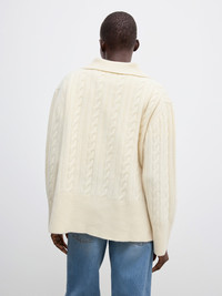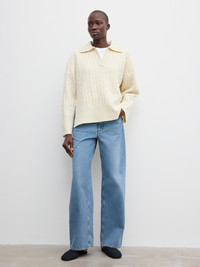 Online Exclusive - Cable knitted polo from a soft cashmere and wool blend with a mixture of faded cables in a unique pattern by Dagmar’ s in-house knitting atelier. Featuring polo neck and slit at sides. FIT & SIZING Model is 175cm/ 5'7" and is wearing a size S, UK 8, US 4. MATERIAL 50% Wool, 50% Cashmere. GARMENT CARE Manually handwash cold, dry flat. GARMENT ORIGIN Produced in Italy