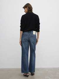 A mid-rise cropped denim in 100% organic cotton with a relaxed fit, straight leg, pressed crease detailing, and classic 5-pocket frame. Made in Italy. - Relaxed fit - Mid waist - Straight leg - Cropped length - Zip fly FIT & SIZING Model is 176 cm/ 5'8" and is wearing a size 27/32 Many choose to size up one size in length MATERIAL 100% Organic cotton GARMENT CARE Machine wash 30° delicate GARMENT ORIGIN Produced in Italy