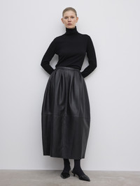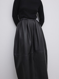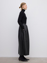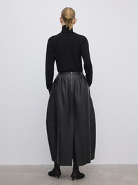 Ankle-length skirt cut from sleek, soft lamb leather featuring a rounded hip, in-seam side pockets, back slit, and a concealed zipper at the back. Kindly note that leather garments can bleed slightly, especially at initial use. This does not change the leather colour, but it could stain other materials. FIT & SIZING Model is 177 cm / 5'8" and is wearing a size 36, UK 8, US 4. MATERIAL 100% Lamb leather GARMENT CARE Dry clean only by specialist GARMENT ORIGIN Produced in Turkey