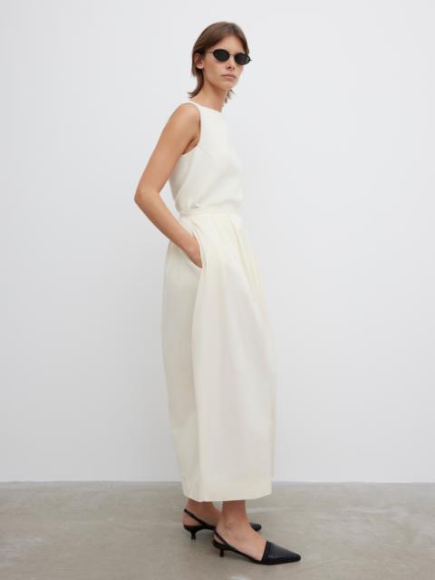 A pleated ankle-length skirt featuring a rounded hip, in-seam side pockets, a back slit, and a concealed zipper at the back. FIT & SIZING Model is 176 cm / 5'7" and is wearing a size 36, UK 8, US 4. MATERIAL 51% Recycled Viscose, 49% Recycled Polyester GARMENT CARE Dry Clean GARMENT ORIGIN Produced in Portugal