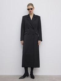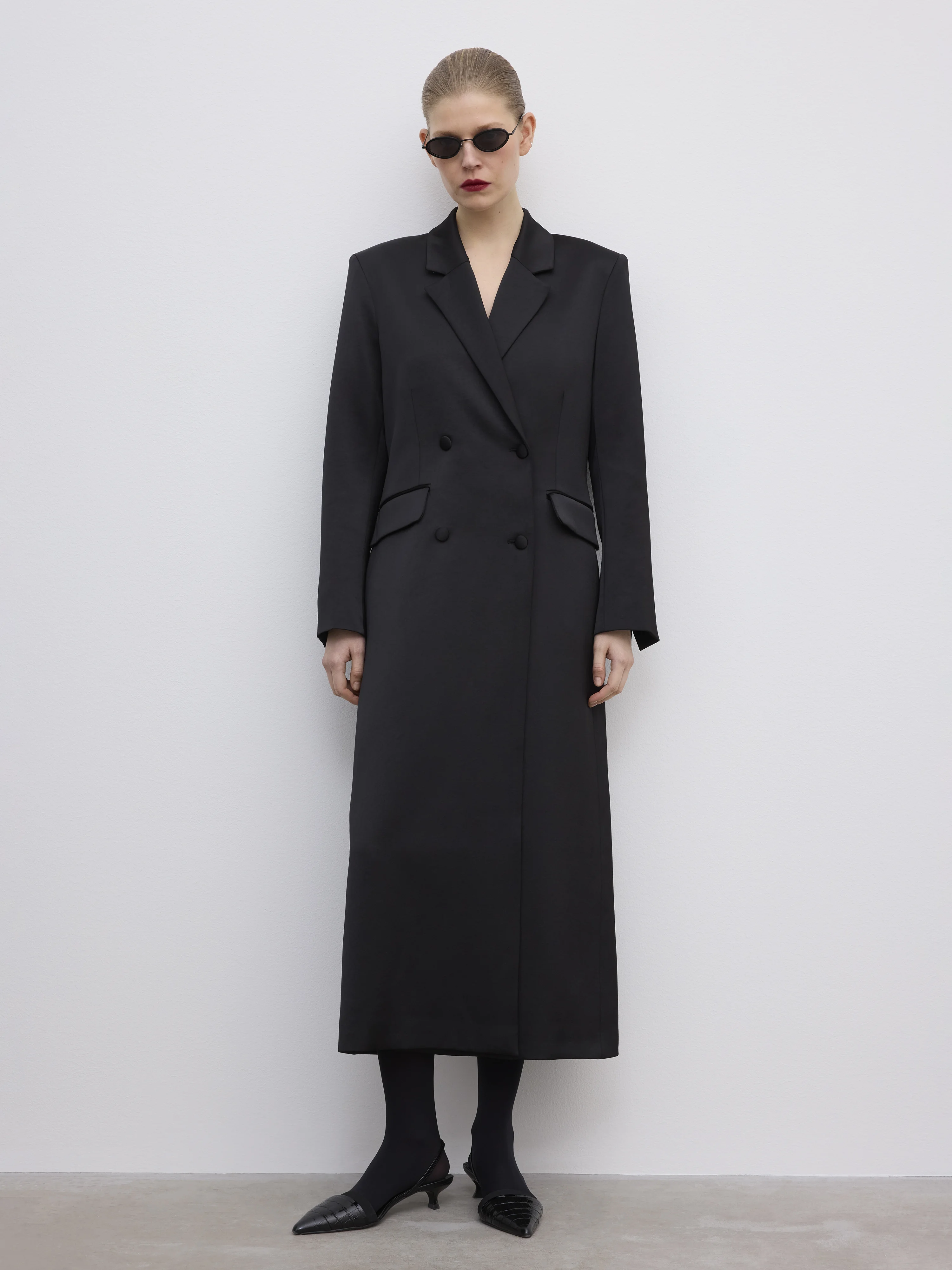 A double-breasted coat in lustrous duchesse satin with a sharply tailored, elongated look. Presented with a high slit at the back, front welt pockets and fabric-covered buttons. Fully lined. FIT & SIZING Model is 175cm/ 5'7" and is wearing a size 36, UK 8, US 4 MATERIAL 59% Viscose 41% Polyester GARMENT CARE Dry clean GARMENT ORIGIN Produced in Portugal