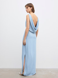 Full-length dress in silky viscose framed by a waterfall neckline to the front and back. Body-skimming with a slight nip at the waist for a feminine silhouette. FIT & SIZING Model is 176 cm / 5'7" and is wearing a size 36, UK 8, US 4. MATERIAL 50% Eco-friendly viscose, 50% viscose GARMENT CARE Manually handwash cold GARMENT ORIGIN Produced in Portugal