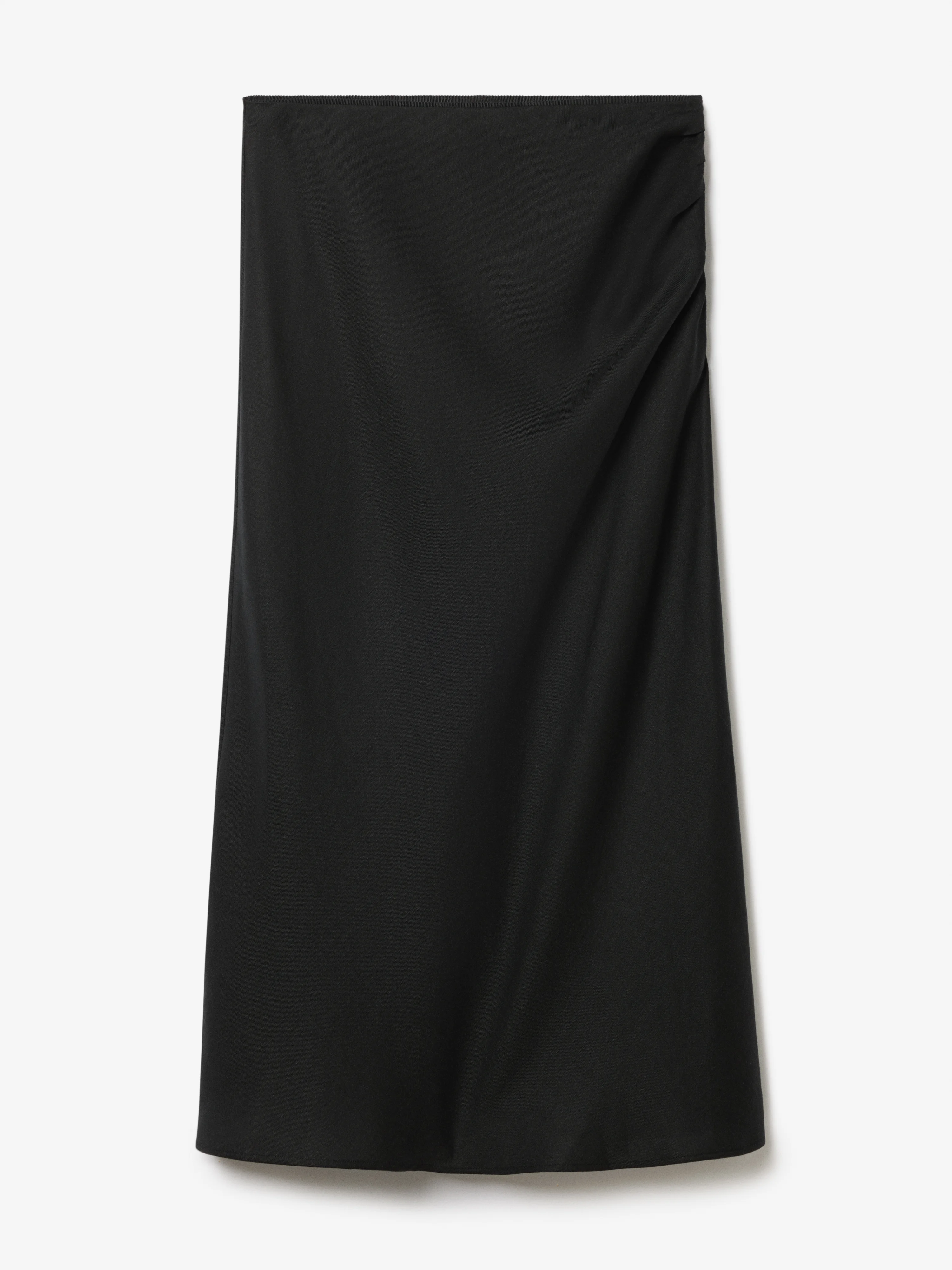 Mid-length skirt in a fluid linen blend with an easy A-line frame, accented by asymmetric pleats that gather at the hip. Finished with a concealed side zip. MATERIAL 56% Linen 44% Lyocell GARMENT ORIGIN Produced in Portugal