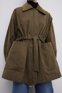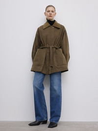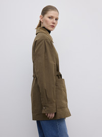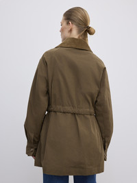 Field jacket in water-repellent Italian cotton canvas with an oversized fit, patch pockets, and a zippered front placket. Detailed with contrasting corduroy at the collar and cuffs, and a drawstring waist for a cinched look. FIT & SIZING Model is 176 cm / 5'7" and is wearing a size S, UK 10, US 6. MATERIAL 45% Cotton 16% Polyamide, 39% Polyester GARMENT CARE Dry clean GARMENT ORIGIN Produced in Portugal