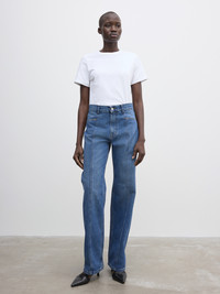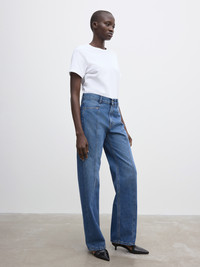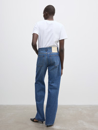 A mid-rise jean in 100% organic cotton with a straight, wide-leg frame and top-stitch detailing to the front. Made in Italy. Oversized in fit, many choose to size down one size. - Organic cotton - 5 pocket denim construction - Mid rise - Loose fit - Straight leg - Zip fly - Made in Italy - Model is 178cm/ 5'8" and is wearing a size 27/34 - Oversized in fit, many choose to size down one size FIT & SIZING Model is 178cm 5'8" and is wearing a size 27/34. MATERIAL 100% Organic cotton. GARMENT CARE 30°C Machine Wash. Do not tumble dry. GARMENT ORIGIN Produced in Italy