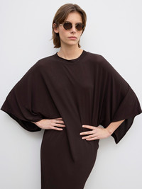 Full-length dress in drapey Italian viscose with a crew neckline and exaggerated kimono sleeves. FIT & SIZING Model is 176 cm / 5'7" and is wearing a size 36, UK 8, US 4. MATERIAL 92% Viscose, 8% Elastane GARMENT CARE Manually handwash cold, dry flat GARMENT ORIGIN Produced in Portugal