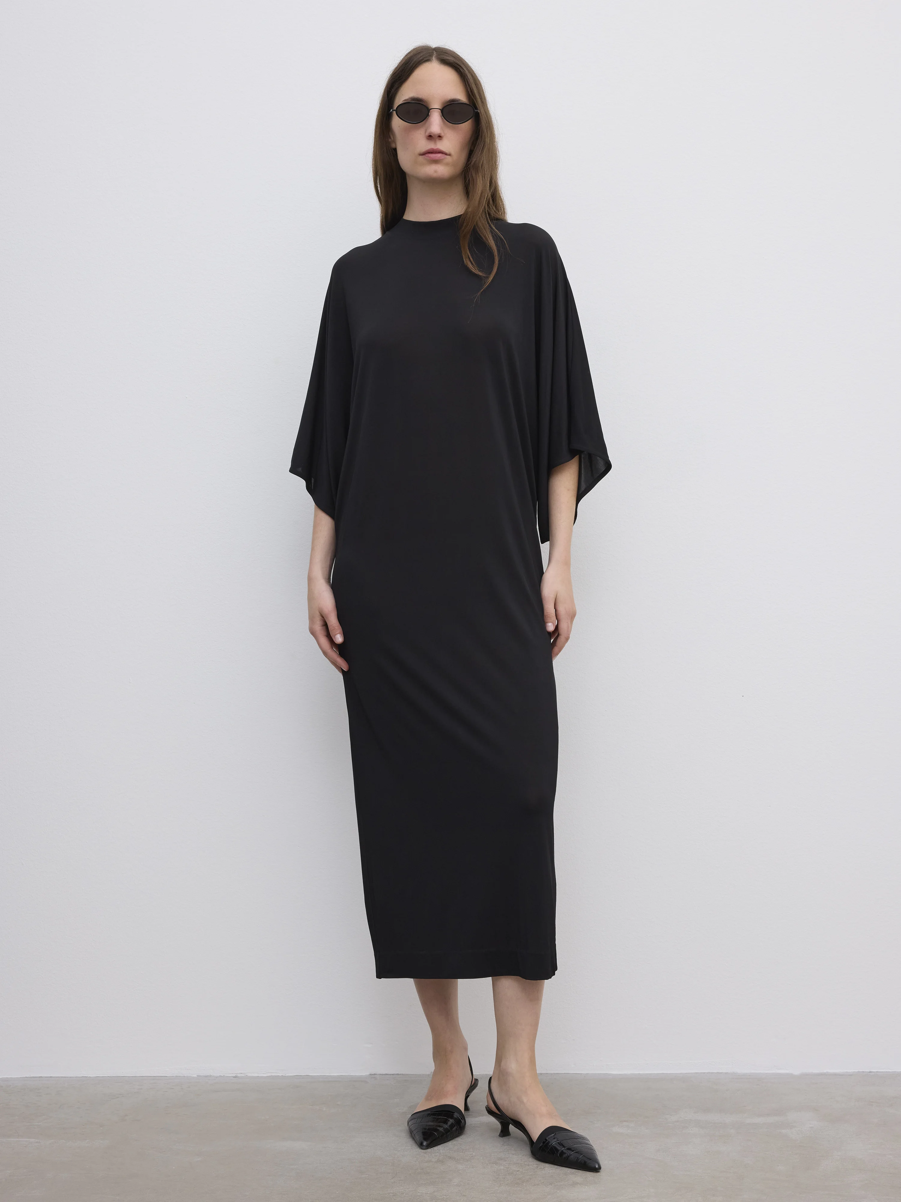 Full-length dress in drapey Italian viscose with a crew neckline and exaggerated kimono sleeves. FIT & SIZING Model is 177 cm / 5'8" and is wearing a size 36, UK 8, US 4. MATERIAL 92% viscose 8% elastane GARMENT CARE Handwash cold GARMENT ORIGIN Produced in Portugal