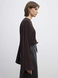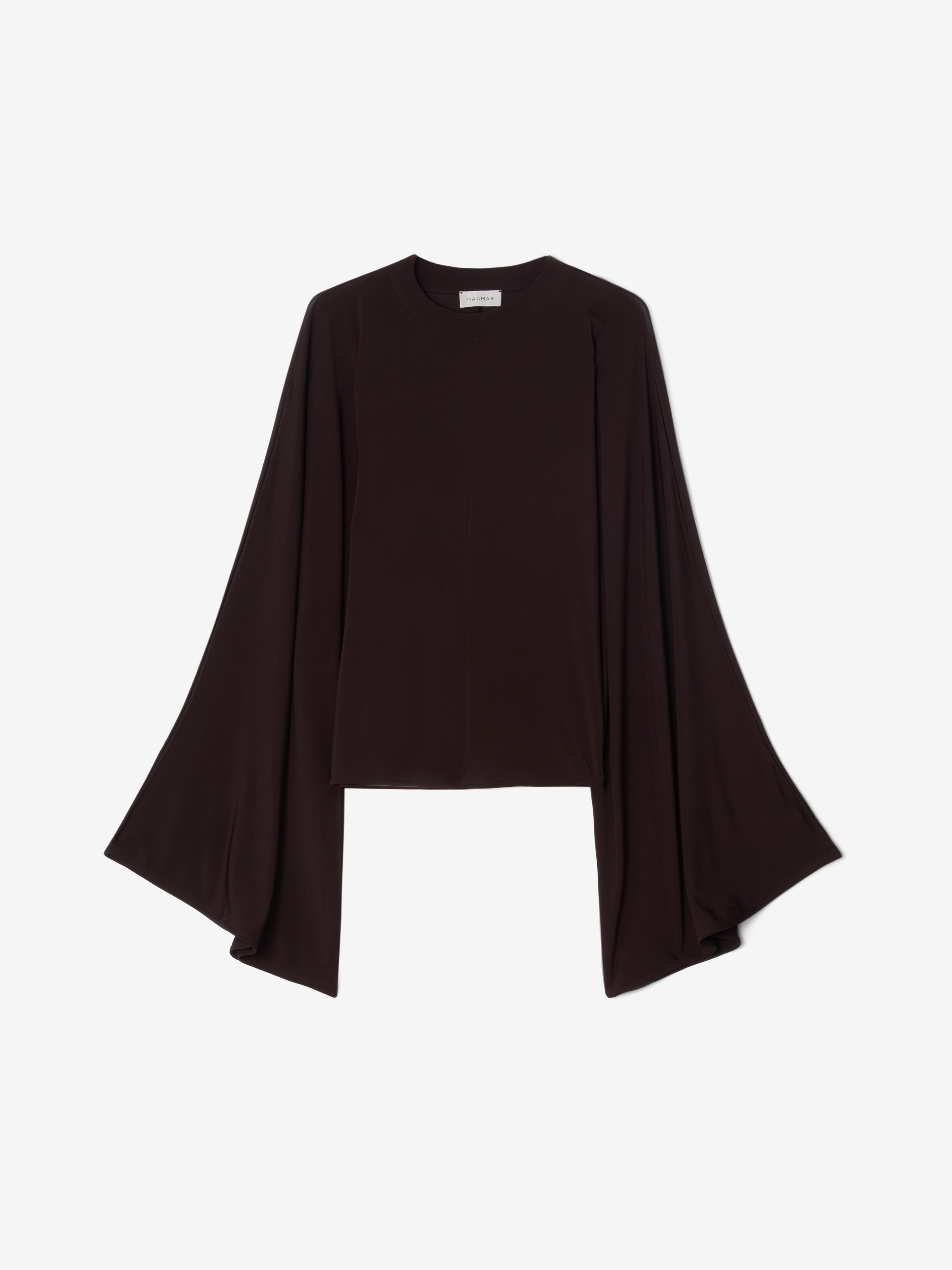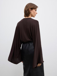 Crew-neck top in drapey Italian viscose with exaggerated kimono sleeves and tonal topstitching centre front and back. FIT & SIZING Model is 176 cm / 5'7" and is wearing a size 36, UK 8, US 4. MATERIAL 92% Viscose, 8% Elastane GARMENT CARE Manually handwash cold, dry flat GARMENT ORIGIN Produced in Portugal