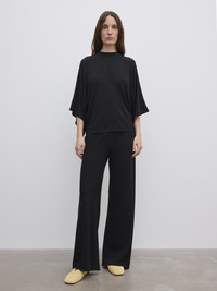 Crew-neck top in drapey Italian viscose, presented with exaggerated, elbow-length kimono sleeves and tonal topstitching centre front and back. FIT & SIZING Model is 177 cm / 5'8" and is wearing a size 36, UK 8, US 4. MATERIAL 92% viscose 8% elastane GARMENT CARE Handwash cold GARMENT ORIGIN Produced in Portugal
