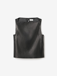 A sleeveless top in buttery soft and lightweight lambskin nappa leather, with a square neckline, accentuating darts, and sharp angular lines. Detailed with a keyhole opening at the back and a covered button closure. Fully lined. FIT & SIZING Model is 178 cm / 5'10" and is wearing a size 36, UK 8, US 4. MATERIAL 100% Lamb leather GARMENT CARE Dry clean by specialist GARMENT ORIGIN Produced in Portugal