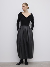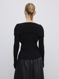 Rib-knit top made from fine merino wool selected for its sleek and silky feel. Presented with elongated sleeves and a wide collar. FIT & SIZING Model is 176 cm / 5'7" and is wearing a size 36, UK 8, US 4. MATERIAL 100% Merino wool GARMENT CARE Handwash cold GARMENT ORIGIN Produced in Hong Kong SAR China