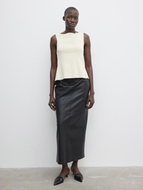 Sleeveless top in a softly structured fine-knit rayon blend with a boat neck and slim-fitting frame. Characterized by cut-out detailing and ties at the back. FIT & SIZING Model is 178cm/ 5'8" and is wearing a size 36, UK 8, US 4. MATERIAL 63% Rayon, 37% Nylon GARMENT CARE Manually handwash cold, dry flat GARMENT ORIGIN Produced in Hong Kong SAR China