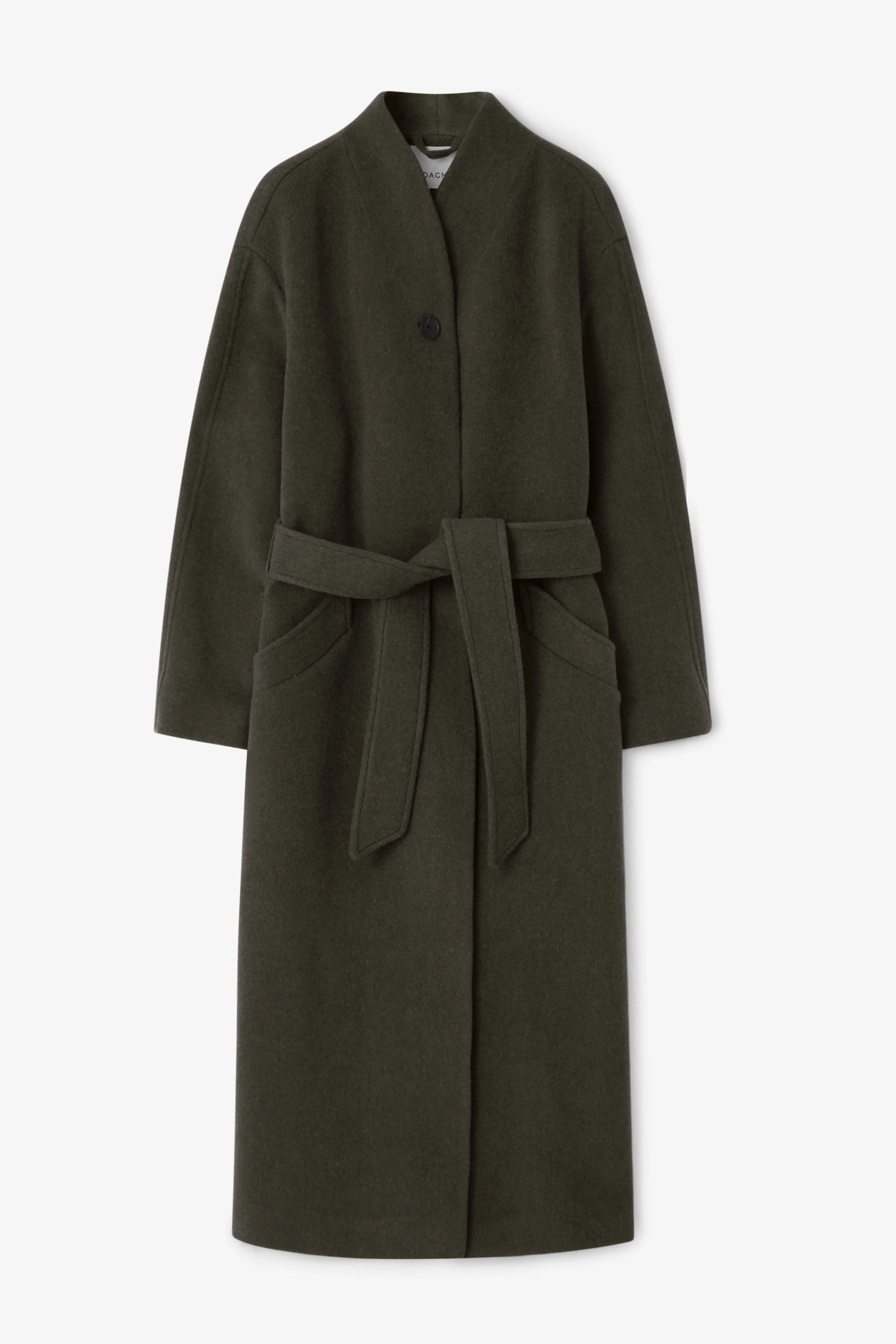 Imagined in our soft recycled wool, the Oversize Belted Coat is a relaxed coat with a cocoon silhouette. Refined by dropped shoulders and rounded sleeves, this enveloping versatile piece is finished with a front single button closure and belt. Runs big in size, many choose to size down one size in this item. FIT & SIZING Model is 175cm/ 5'7" and is wearing a size 36, UK 8, US 4. Runs big in size, many choose to size down one size in this item. MATERIAL 70% Recycled Wool, 10% Recycled polyester, 10% Polyester, 5% Recycled Polyamide, 5% other fibers. Inner lining: 100% Viscose GARMENT CARE Dry Clean Only GARMENT ORIGIN Produced in Portugal