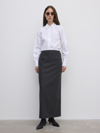 Full-length pencil skirt with an easy straight fit. Complete with a slit and metal zipper at the back. Fully lined. FIT & SIZING Model is 177 cm / 5'8" and is wearing a size 36, UK 8, US 4. MATERIAL 43% Wool 24% Polyester 19% Polyamide 11% Viscose 2% Other fabric GARMENT ORIGIN Produced in Portugal