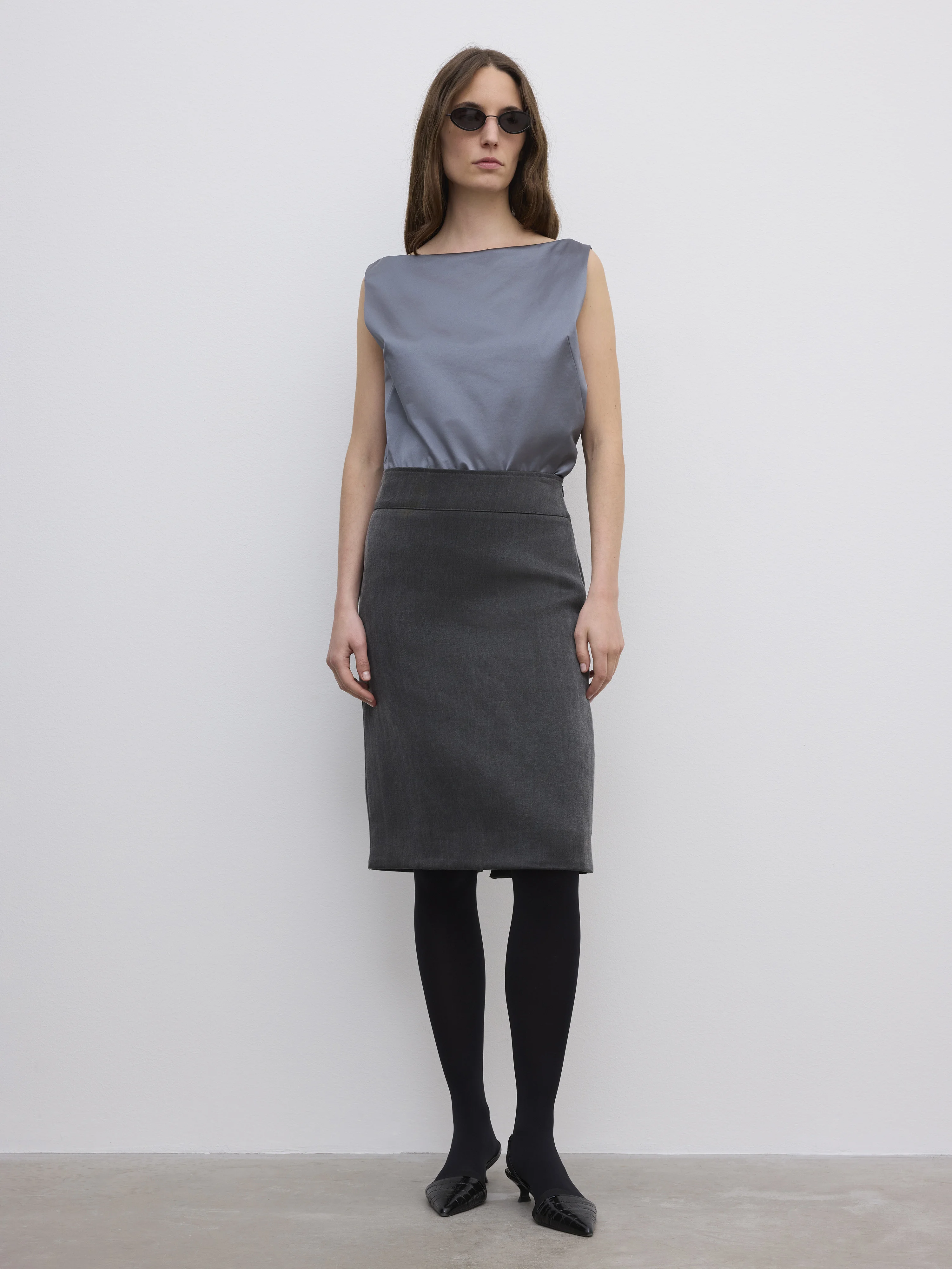 Mid-length pencil skirt in sleek, luxurious Italian twill selected for its exceptional quality and muted sheen. Featuring an easy straight fit, wide waistband and slit at the back. Complete with a concealed side zipper. Fully lined. FIT & SIZING Model is 177 cm / 5'8" and is wearing a size 36, UK 8, US 4. MATERIAL 79% Cotton 21% Cupro GARMENT CARE Dry clean only GARMENT ORIGIN Produced in Portugal