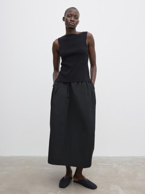 Fine-knit top in a soft cotton blend featuring a deep neckline, short sleeves and ribbing to the cuffs, neckline and hem. Pointelle pattern with a bespoke Dagmar D, constructed by our in-house knitting atelier. FIT & SIZING Model is 176 cm / 5'7" and is wearing a size 36, UK 8, US 4. MATERIAL 70% Organic cotton, 20% Recycled nylon, 10% Silk GARMENT CARE Manually handwash cold, dry flat GARMENT ORIGIN Produced in Hong Kong SAR China