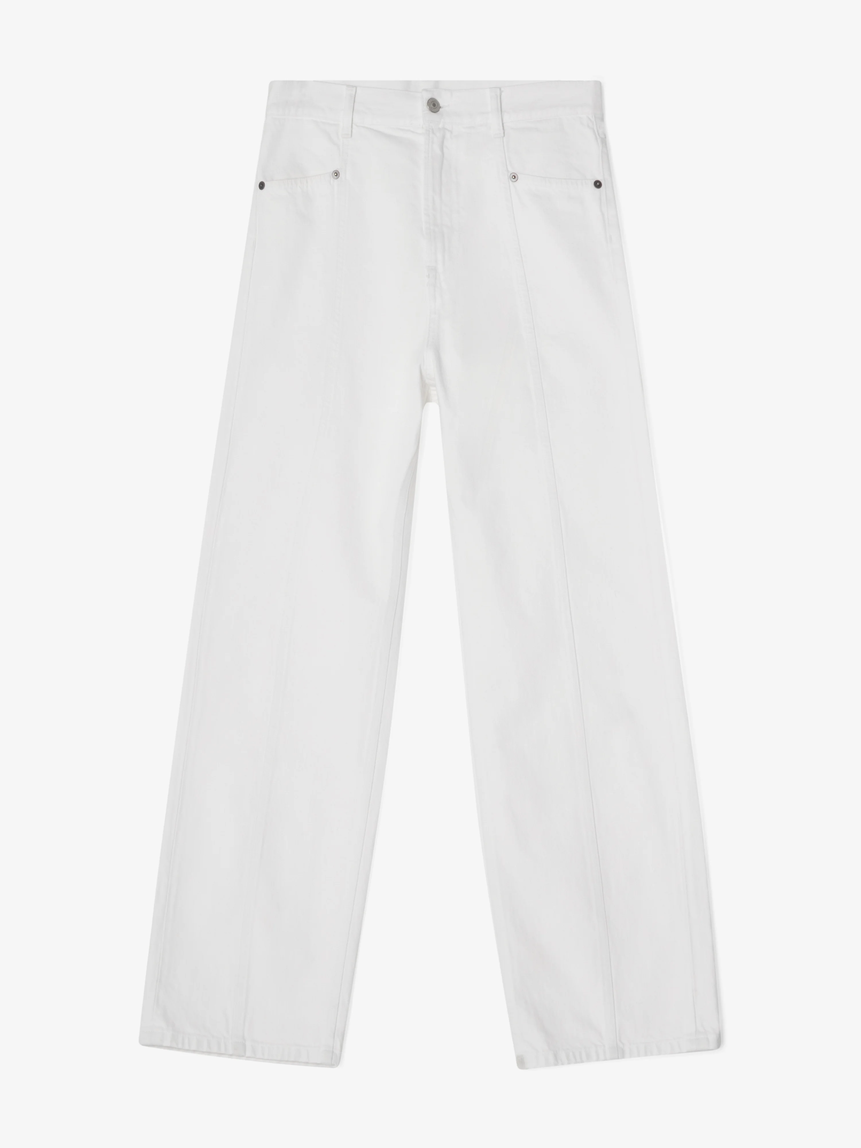 A mid-rise jean in 100% organic cotton with a straight, wide-leg frame and top-stitch detailing to the front. Made in Italy. Oversized in fit, many choose to size down one size. - Organic cotton - 5 pocket denim construction - Mid rise - Loose fit - Straight leg - Zip fly - Italian fabric - Made in Italy - Model is 178cm/ 5'8" and is wearing a size 27/34 - Oversized in fit, many choose to size down one size FIT & SIZING Model is 178 cm 5'8" and is wearing a size 27/34. MATERIAL 100% Organic cotton. GARMENT CARE 30°C Machine Wash. Do not tumble dry. GARMENT ORIGIN Produced in Italy
