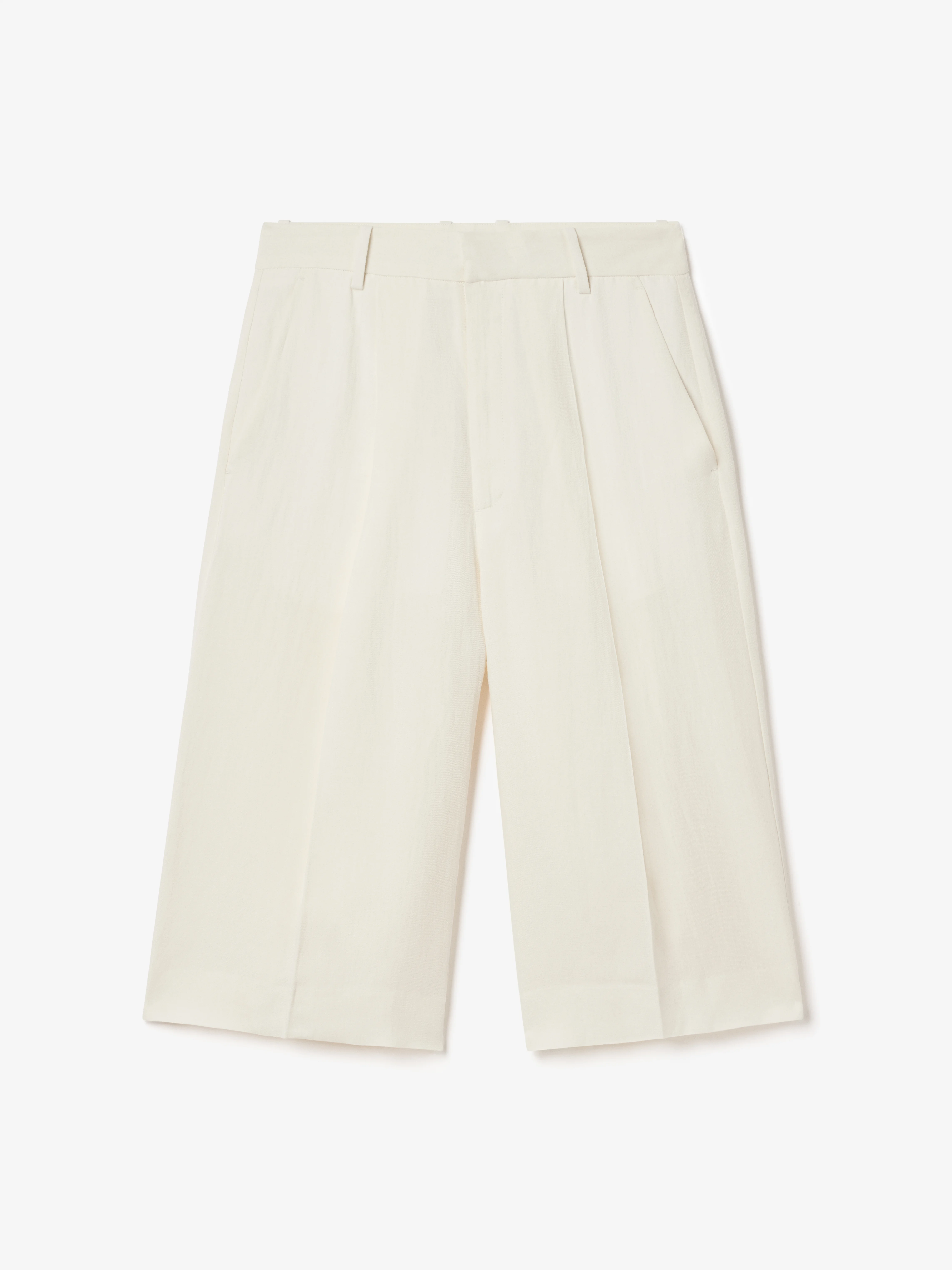 Mid-rise shorts in a fluid linen blend with a wide leg falling just below the knee. Tailored details include dual front pleats, slanted side pockets, back welt pockets, and a hook-and-eye closure. MATERIAL 56% Linen 44% Lyocell GARMENT ORIGIN Produced in Portugal