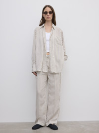 Eased drawstring trousers made from fluid Italian viscose featuring front slanted pockets, back welt pockets, and an elasticated waist. FIT & SIZING Model is 177 cm / 5'8" and is wearing a size 36, UK 8, US 4. MATERIAL 85% Eco-friendly viscose, 15% elastane GARMENT CARE Machine wash 30 GARMENT ORIGIN Produced in Portugal