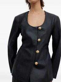 scoop-neck leather jacket