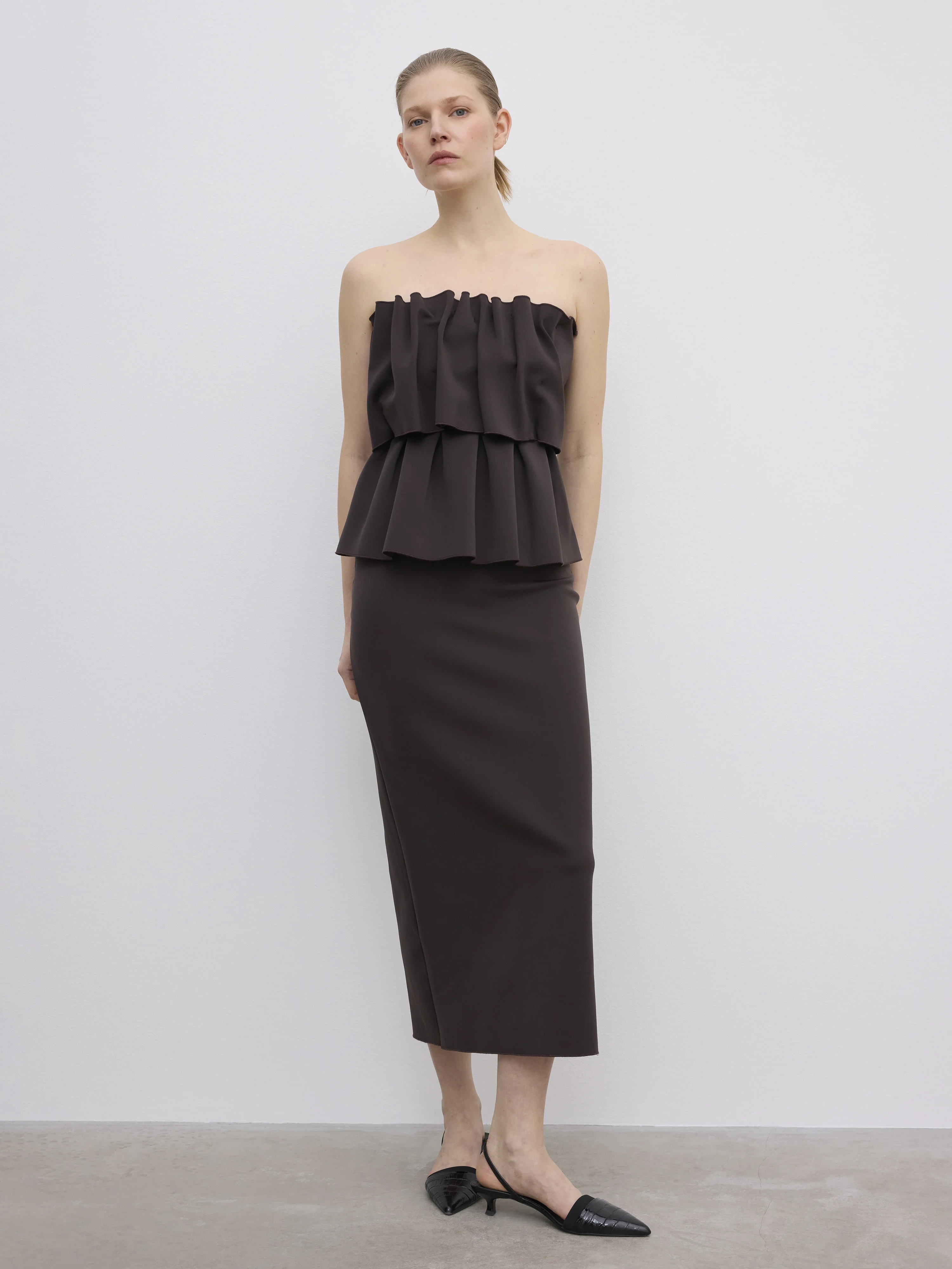 Sleeveless Sculpted dress in a sculptural polyamide blend, presented with a slim skirt, artful draping, and a long, lean silhouette. FIT & SIZING Model is 176 cm / 5'7" and is wearing a size 36, UK 8, US 4. MATERIAL 63% polyamide 22% recycled polyamide, 15% elastane GARMENT CARE Dry clean only GARMENT ORIGIN Produced in Portugal