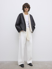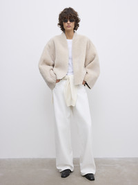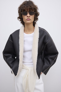 A gently cropped jacket in warm lamb shearling with a softly structured, reversible frame. Presented with a shawl collar, dropped shoulders, and rounded sleeves. FIT & SIZING Model is 179 cm / 5'10.5" and is wearing a size 36, UK 8, US 4 MATERIAL 100% Lamb leather GARMENT ORIGIN Produced in Turkey