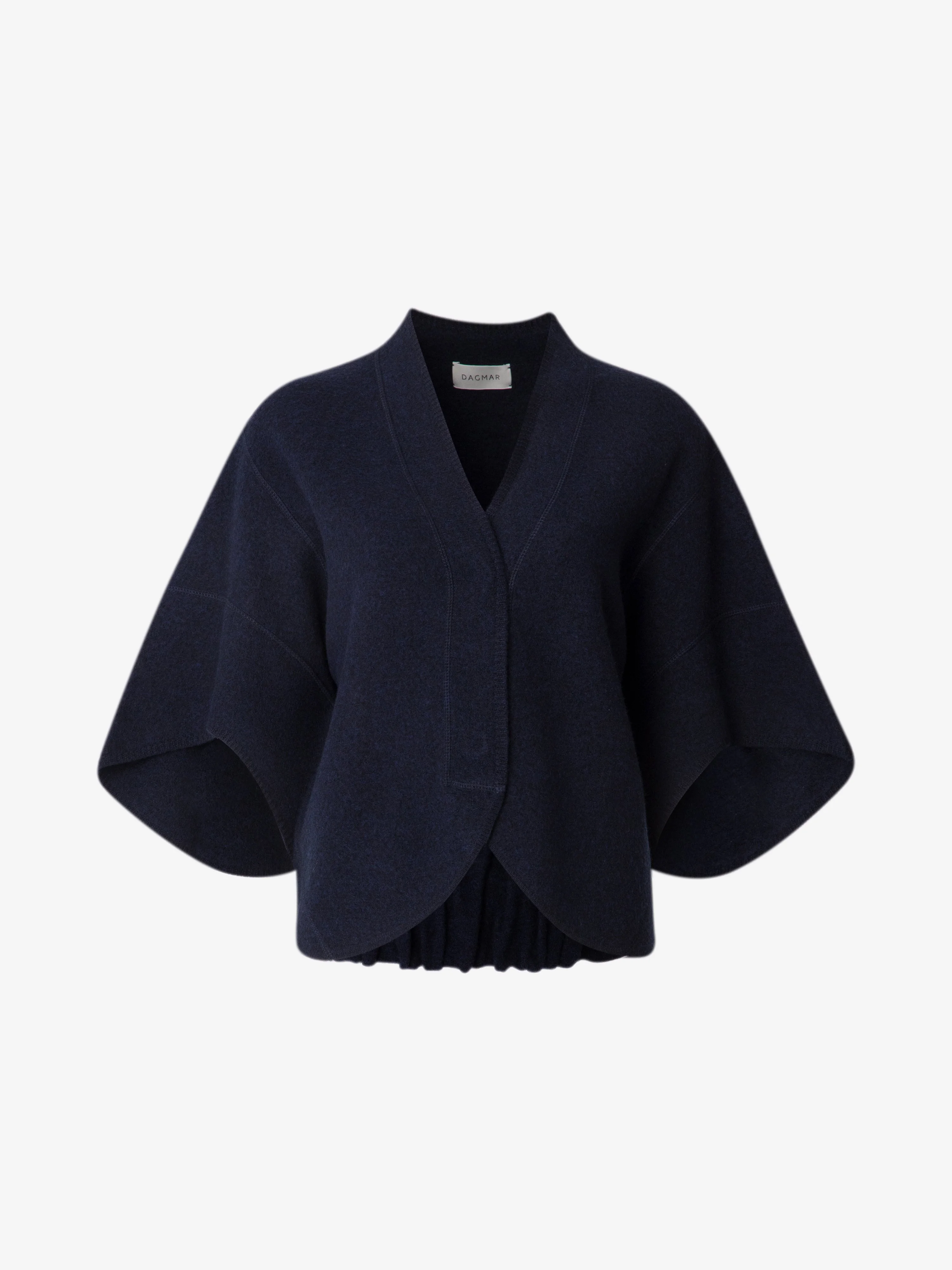V-neck cardigan in a rich and rigid 100% mulesing-free merino wool. A Dagmar essential presented with a cropped frame, rounded dropped shoulders and concealed buttons at the front. FIT & SIZING Model is 177 cm/ 5'8" and is wearing a size 36, UK 8, US 4. MATERIAL 100% Mulesing-free merino wool. GARMENT CARE Hand wash cold. Dry flat. GARMENT ORIGIN Produced in China