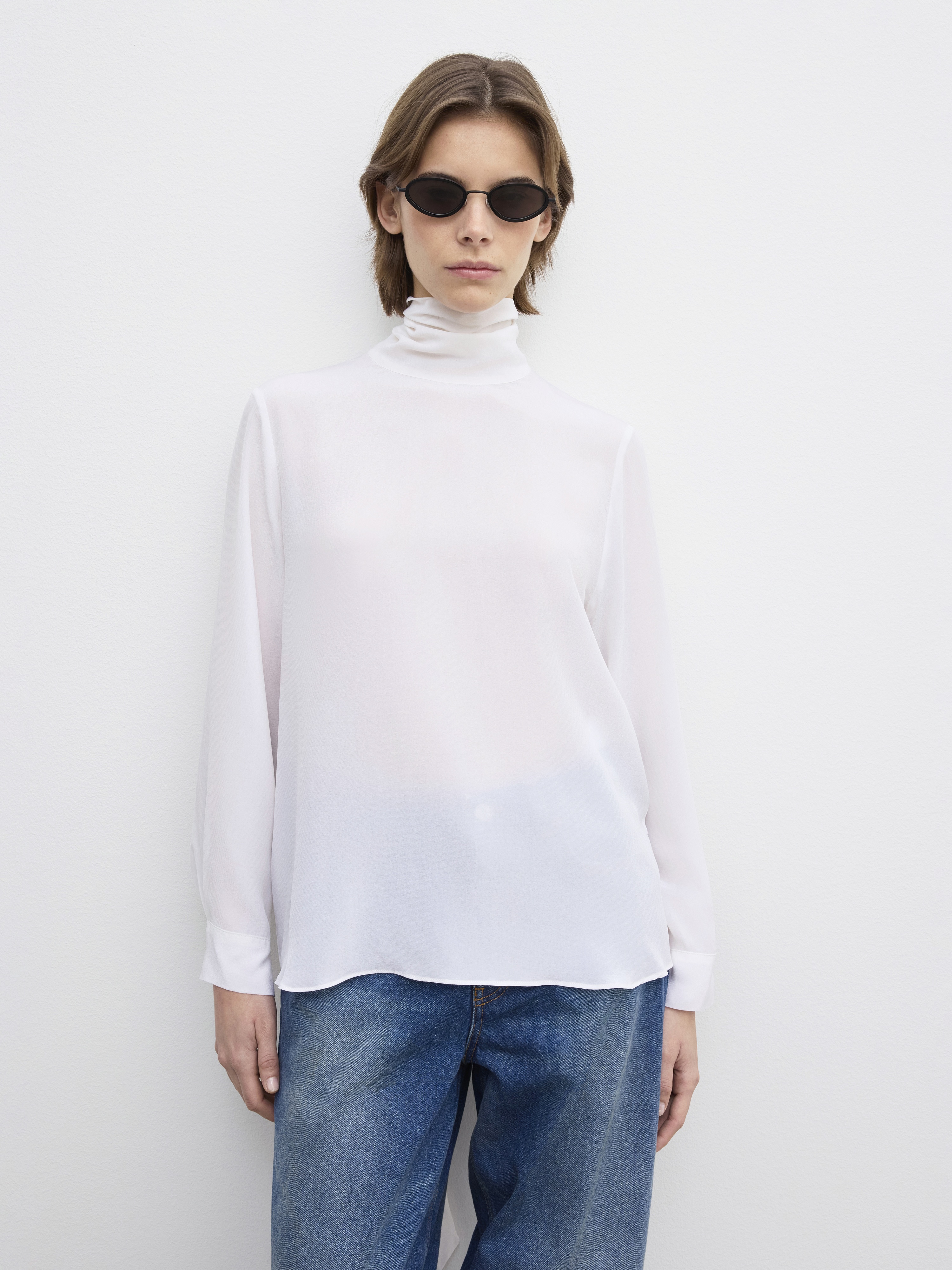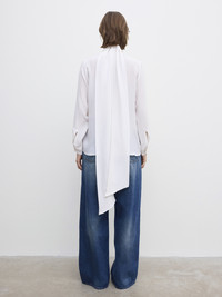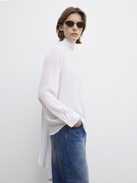 Sheer blouse in 100% fluid silk presented with an elongated fit and contrasting scarf detailing at the collar. FIT & SIZING Model is 176 cm / 5'7" and is wearing a size 36, UK 8, US 4. MATERIAL 100% Silk GARMENT CARE Manually handwash cold GARMENT ORIGIN Produced in China