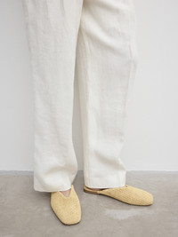 Made from chrome-free leather and a textured viscose raffia weave, The Square Toe Slip ins feature a square toe and a v-shaped topline. Hand made in Italy, the detailing included leather lining and a slight heel for lift. FIT & SIZING Fits slightly bigger in size. If in between sizes we recommend sizing down MATERIAL 100% Raffia. GARMENT ORIGIN Produced in Italy