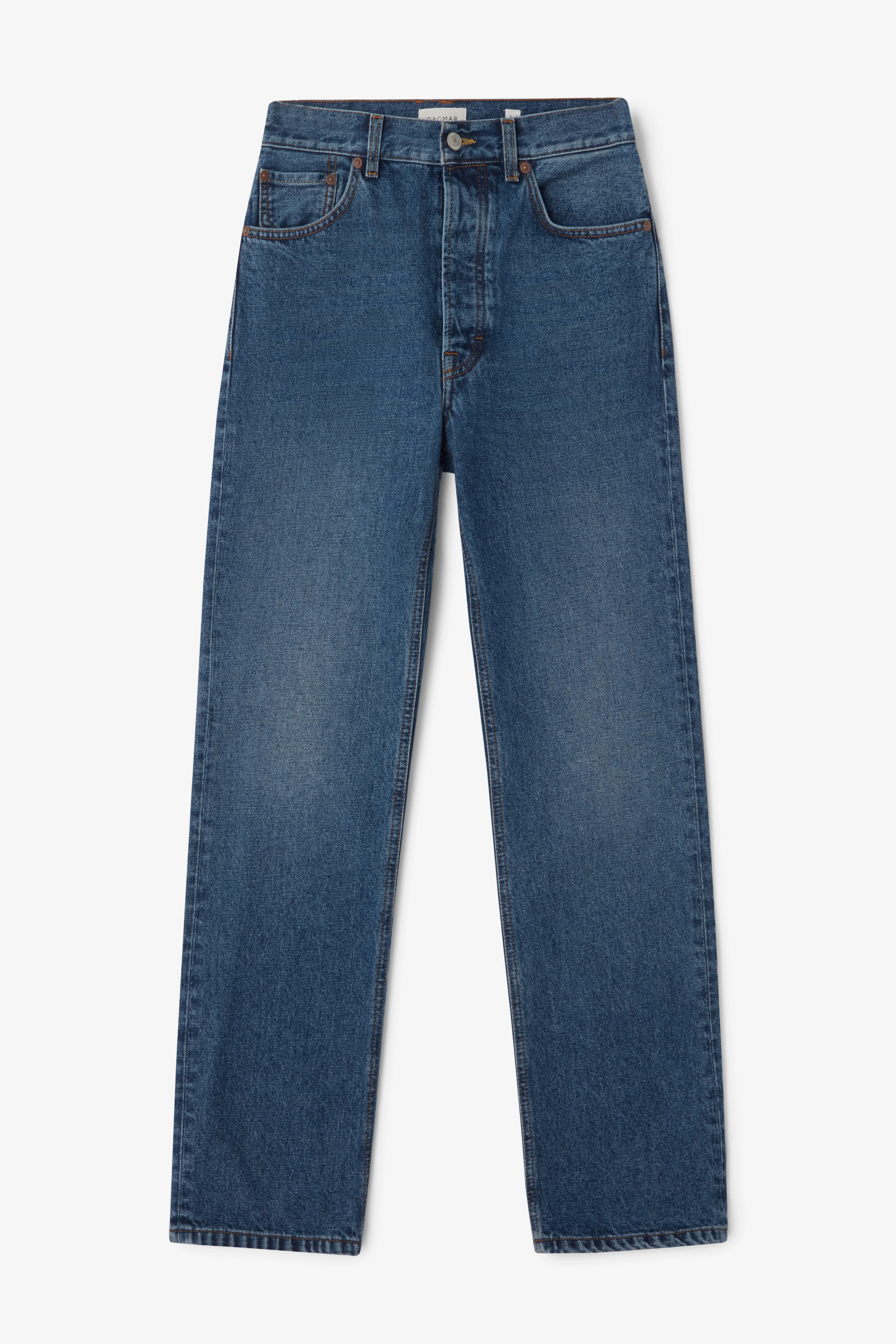Responsibly made from our exceptional organic cotton, these jeans are cut to a 5-pocket silhouette. Shaped to a straight mid-rise fit, they offer a modern take on a classic style. This style runs small, we recommend sizing up one size - Organic cotton - 5 pocket denim construction - Button fly - Mid-rise - Straight leg - Made in Italy - Model is 175cm/ 5'7" and is wearing a size 27/32 - This style runs small, we recommend sizing up one size FIT & SIZING Model is 175cm/ 5'7" and is wearing a size 27/32 MATERIAL 100% Organic cotton. GARMENT CARE 30°C Machine Wash. Do not tumble dry. GARMENT ORIGIN Produced in Italy