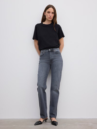 Responsibly made from our exceptional organic cotton, these jeans are cut to a 5-pocket silhouette. Shaped to a straight fit, they offer a modern take on a classic style. This style runs small, we recommend sizing up one size - Organic cotton - 5 pocket denim construction - Button fly - Mid-rise - Straight leg - Italian fabric - Made in Italy - Model is 175cm/ 5'7" and is wearing a size 27/32 - This style runs small, we recommend sizing up one size FIT & SIZING Model is 175cm/ 5'7" and is wearing a size 27/32 Classic denim fabric - no added stretch material. This style is close in fit, and many choose to size up one size in this item GARMENT ORIGIN Produced in Italy
