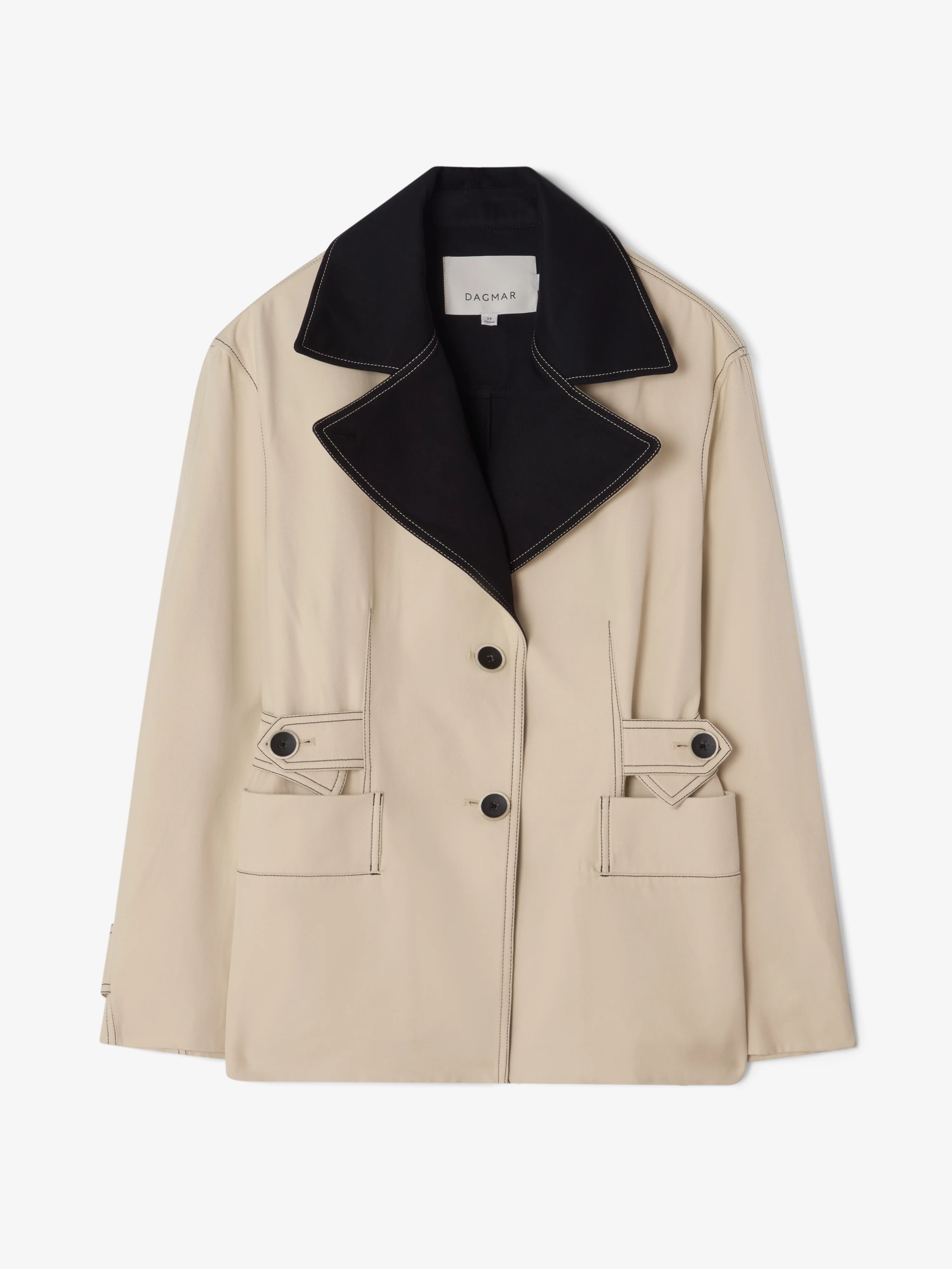 A single-breasted utility-style blazer from contrasting cotton, reprised in the buttons and seams. Framed by a wide collar, relaxed shoulders, and adjustable straps at the waist. FIT & SIZING Model is 176 cm / 5'7" and is wearing a size 36, UK 8, US 4. MATERIAL 98% Cotton, 2% Polyamide GARMENT CARE Dry clean GARMENT ORIGIN Produced in Portugal