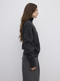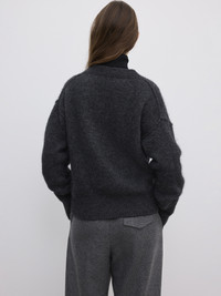 V-neck sweater in light and silky, brushed Italian alpaca with a relaxed fit, extended sleeves, and dropped shoulders finished by inverted seams. FIT & SIZING Model is 177 cm / 5'8" and is wearing a size 36, UK 8, US 4. MATERIAL 40% Baby alpaca 25% Extrafine wool, 35% Polyamide GARMENT CARE Handwash cold