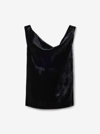 Sleeveless top in rich and lustrous Italian velvet, framed by a curved waterfall neckline to the front and back. Complete with a concealed zipper at the side. Fully lined. MATERIAL 82% Viscose 12% Silk GARMENT CARE Dry clean GARMENT ORIGIN Produced in Portugal