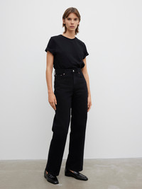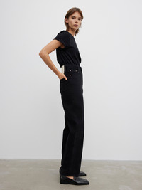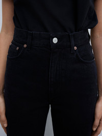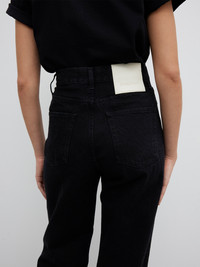 A high-rise 5-pocket denim in 100% organic cotton with a fitted waist and a slightly flared, relaxed leg. Made in Italy. This style runs small, we recommend sizing up - Organic cotton - 5 pocket denim construction - Zip fly - Tailored fit - High-rise - Wide and slightly flared leg - Made in Italy - Model is 176cm/ 5'7" and is wearing a size 27/32 - This style runs small, we recommend sizing up FIT & SIZING Model is 176 cm/ 5'7" and is wearing a size 27/32 MATERIAL 100% Organic cotton GARMENT CARE Machine wash 30° GARMENT ORIGIN Produced in Italy