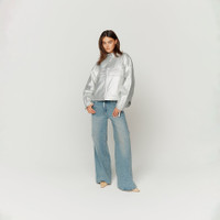Designed for a standard fit, we recommend selecting your normal size Freya is 5'9, is a size UK 8 and wears a X-Large for an oversized fit Panelling detail Chrome vegan leather Adjustable side buckles Embroidery detailing Boxy fit Cuff zip detail Double sided zip fastening Popper fastening collar detail FABRIC COMP SHELL: 100% POLYURETHANE LINING: 100% POLYESTER