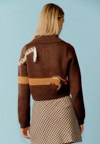 Designed for a standard fit, we recommend selecting your normal size Jess is 5'9, is a size UK 8 and wears a UK 10 for a relaxed fit Classic House of Sunny silhouette Wrap around sausage dog design 3D tasseled scarf Embroidered HoS logo detailing Cropped fit Button fastening Embroidered top note details Complete the look with the matching 'Retro Blanket Skirt' FABRIC COMP 50% COTTON, 50% ACRYLIC COLOUR TOBACCO