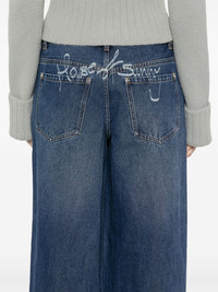 wide-leg jeans Highlights - Indigo blue - Concealed fly and button fastening - Adjustable side straps Made in United Kingdom Composition Cotton 90%, Viscose 5%, Polyester 5% SIZE & FIT Model measurements Height 5 ft 9 in(1.75 m) Bust/Chest 34.64 in(88 cm) Hips 36.61 in(93 cm) Waist 26.37 in(67 cm) FittingInformation Designed with a wide leg cut, these jeans allow for a close fit at the waist and offer a loose and roomy fit over the leg Constructed from stretch denim, this piece offers a stretch fit with durability