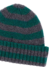 Hard Working striped-pattern beanie hat Highlights - Grey and green - Striped pattern - Ribbed trim Made in United Kingdom Composition Lambs Wool 100%