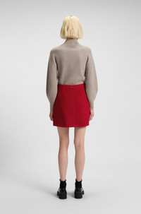 DETAILS Blended with wool, this HUGO Womenswear mini skirt has a textured effect. A-line shape and regular fit. Complete the look with the matching cropped blazer. Regular fit Regular rise Mini skirt Zip closure No vent Fully lined Short length Fit back length: 44 cm (17 inches) Ramine - 50547637 QUALITY & CARE INSTRUCTIONS Iron Low Heat Do Not Bleach Do Not Wash Material: 70% Polyacrylic, 20% Polyester, 10% Wool, Lining: 100% Polyester Do Not Tumble Dry Reduced Dry Clean