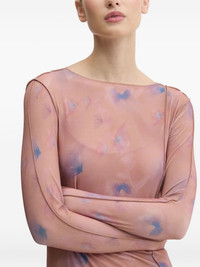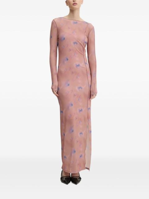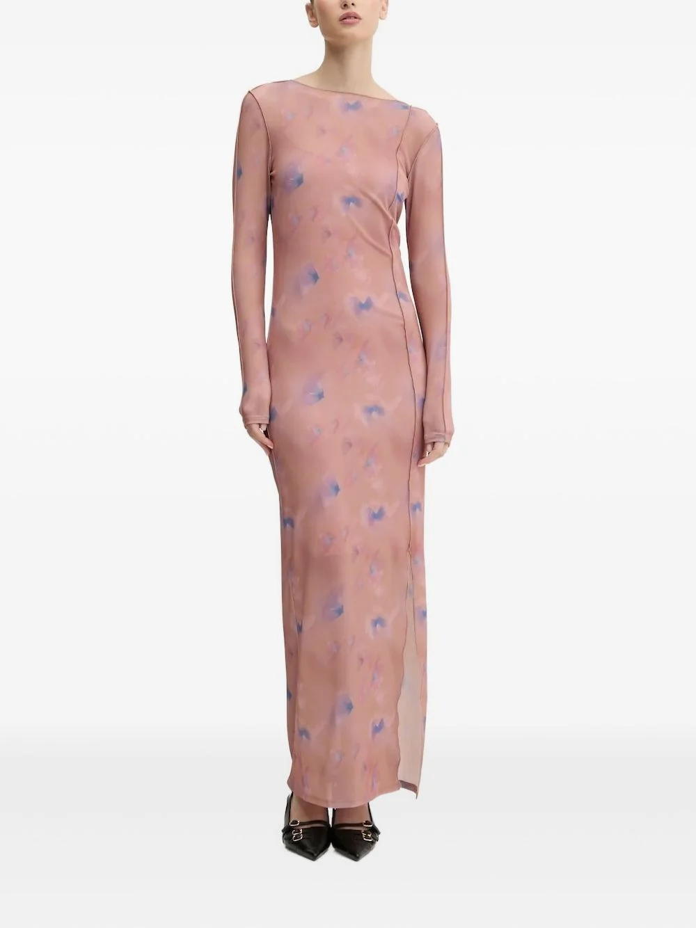 abstract-print side-split maxi dress Highlights - Dusty rose - Abstract print - Long sleeves - Side slit - Boat neck - Fitted bodice Imported Composition Polyester 86%, Elastane 14% Washing instructions Read Manufacturer Guidelines
