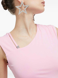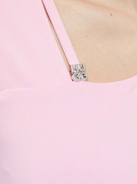 asymmetric logo-detail mini dress Highlights - Light pink - Asymmetric neckline - Logo detail - Sleeveless - Side slit - Ruched detail Imported Composition Viscose 94%, Elastane 6% Washing instructions Read Manufacturer Guidelines