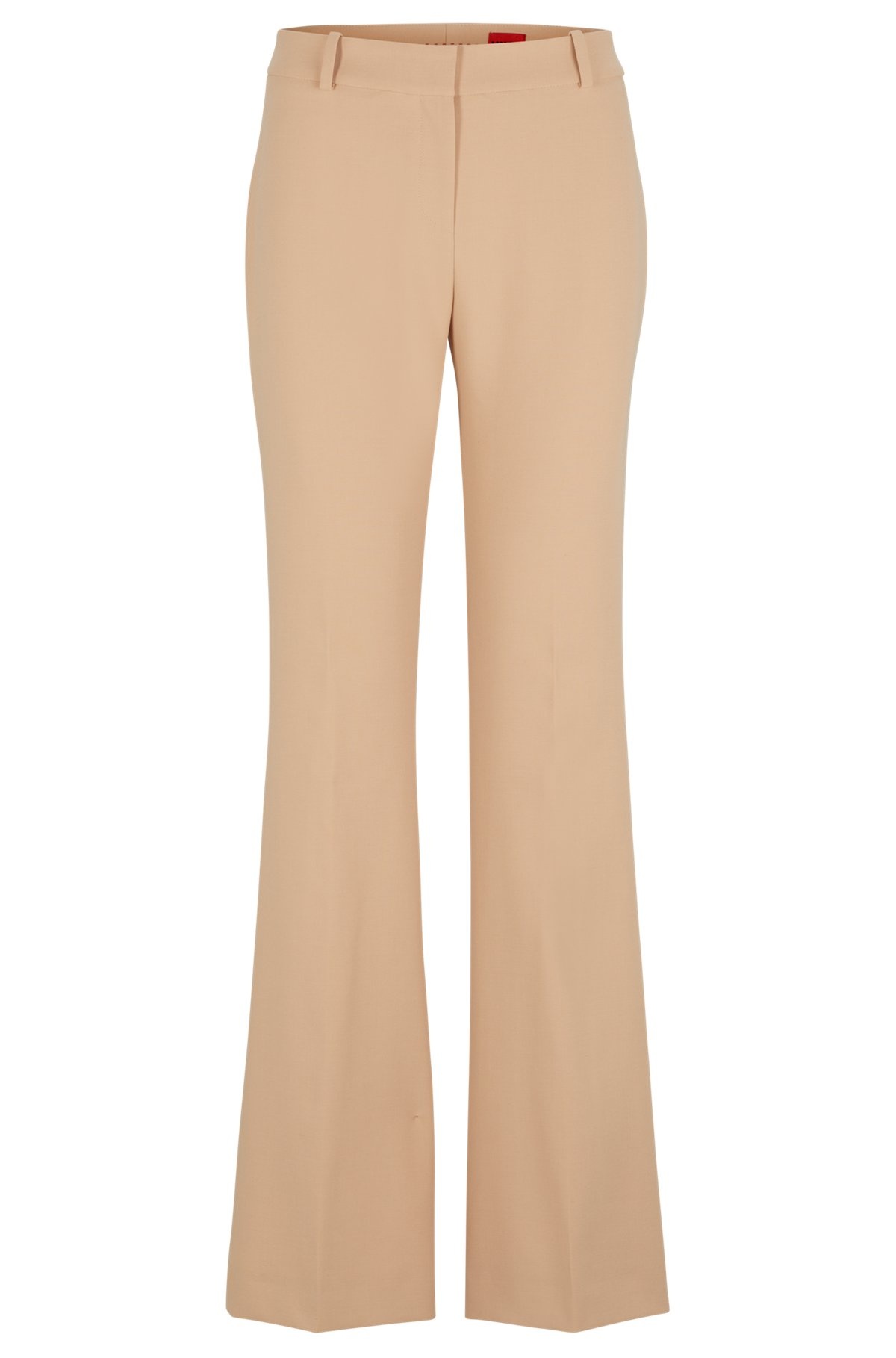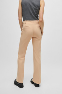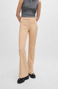 SIZE AND FIT The model wears a size 4 and is 5'10" tall with a, 32" chest, 24" waist and 35" hips. DETAILS Hilotinna - 50518543 Versatile trousers by HUGO. Crafted in stretch fabric for comfort, this regular-fit pair features a bootcut leg with creases at the front and back. Regular fit High rise Hook and zip closure Boot leg Pockets bottom back: Welt pocket Unlined Fit foot width: 59,0 cm (23.2 inches) QUALITY & CARE INSTRUCTIONS Iron Low Heat Quality: 64% Polyester, 31% Viscose, 5% Elastane, pocketing: 100% Cotton Reduced Dry Clean Do Not Tumble Dry Machine Wash Cold Gentle Do Not Bleach