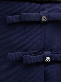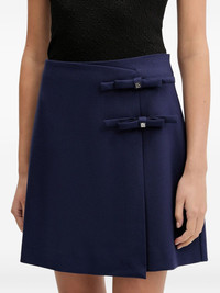 bow-detail wrap mini skirt Highlights - Navy blue - Wrap-around design - Two bow embellishments - Metallic logo plaque - A-line shape - Concealed zip fastening Imported Composition Polyester 64%, Viscose 26%, Wool 6%, Elastane 4% Washing instructions Read Manufacturer Guidelines