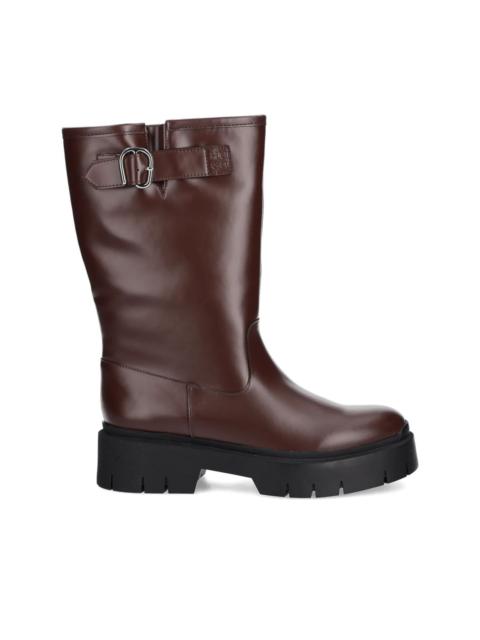 buckle-detail biker boots Highlights - Brown - Buckle-embellished strap - Lug sole - Round toe Imported Composition Outer: Polyester 60%, Polyurethane 40% Lining: Polyester 100% Sole: Rubber 100%