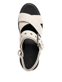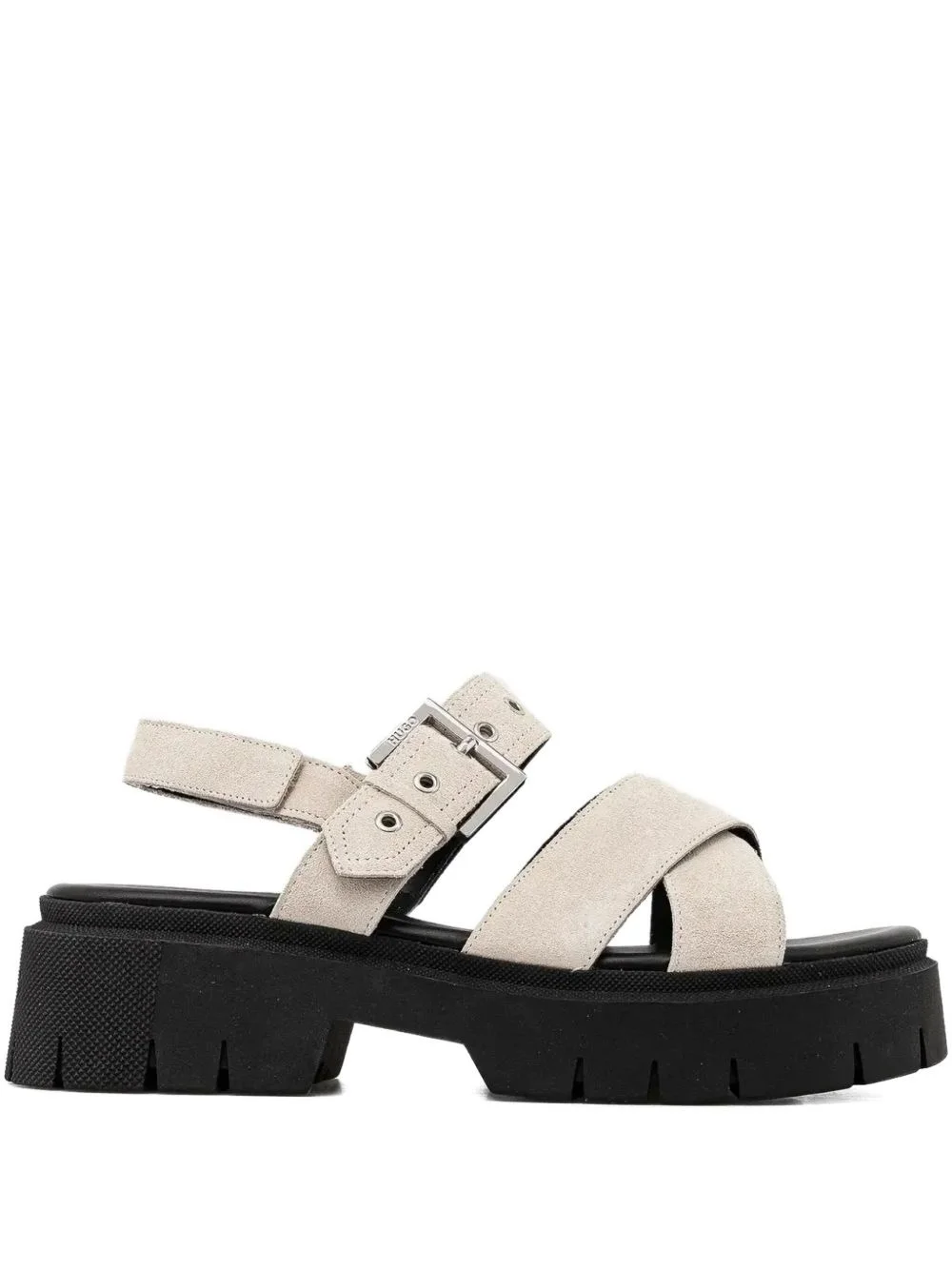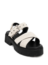 buckle-strap suede sandals Highlights - Ecru - Buckle-strap fastening - Crossover strap at the toe - Low block heel - Chunky rubber sole Imported Composition Outer: Calf Suede 100% Lining: Polyester 60%, Polyurethane 40% Sole: Thermoplastic Elastomers (TPE) 100%