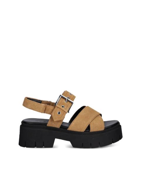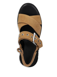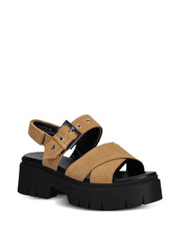 buckle-strap suede sandals Highlights - Caramel brown - Buckle-strap fastening - Crossover strap at the toe - Low block heel - Chunky rubber sole Imported Composition Lining: Polyester 60%, Polyurethane 40% Outer: Calf Suede 100%, Polyester 60%, Polyurethane 40% Sole: Thermoplastic Elastomers (TPE) 100%