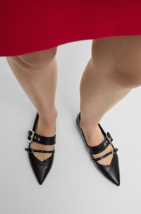 DETAILS Maridia_Ball_BKNA - 50536400 Easy to style up or down, these HUGO Womenswear ballerina pumps are shaped in rich leather. Twin straps with hardware details add a creative touch. Fastening top: Buckle closure Sole: Other material Packaging: Box QUALITY & CARE INSTRUCTIONS Upper material: 100% Sheepskin, Lining: 100% Polyurethane, Sole: 100% Synthetic rubber, Innersole: 100% Polyurethane