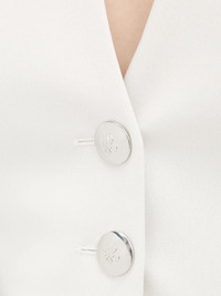 button-up vest Highlights - White - V-neck - Sleeveless - Cropped - Button front fastening - Silver-tone buttons Imported Composition Polyester 62%, Viscose 28%, Metallic Fibre 5%, Polyamide 3%, Elastane 2% Washing instructions Read Manufacturer Guidelines