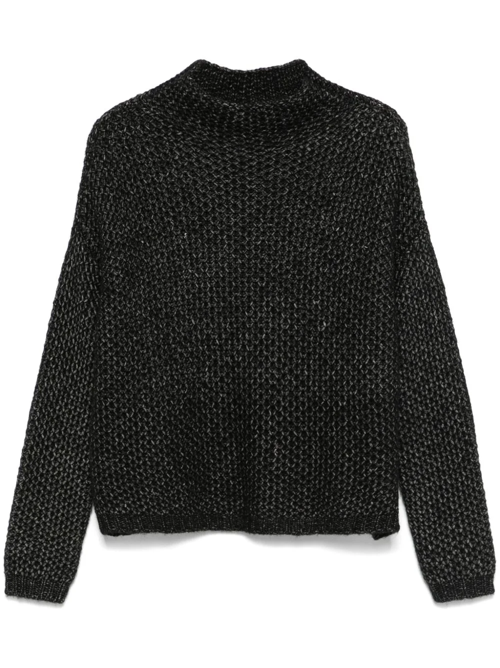 chunky-knit sweater Highlights - Black - Mock neck - Drop shoulder - Long sleeves - Ribbed cuffs and hem Imported Composition Cotton 44%, Wool 23%, Polyacrylic 23%, Alpaca Wool 10% Washing instructions Hand Wash